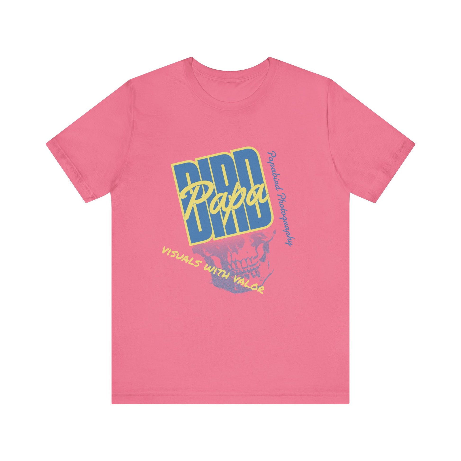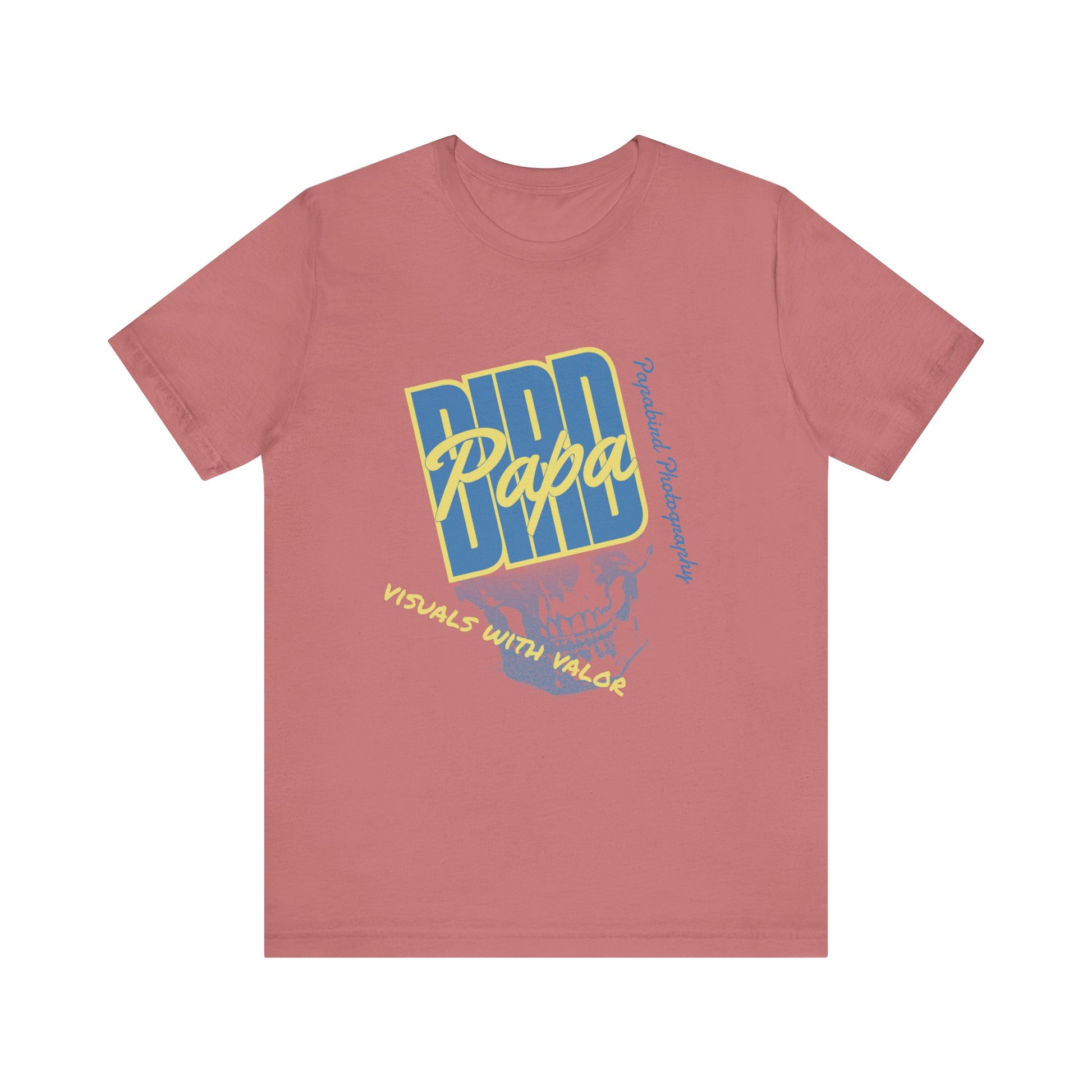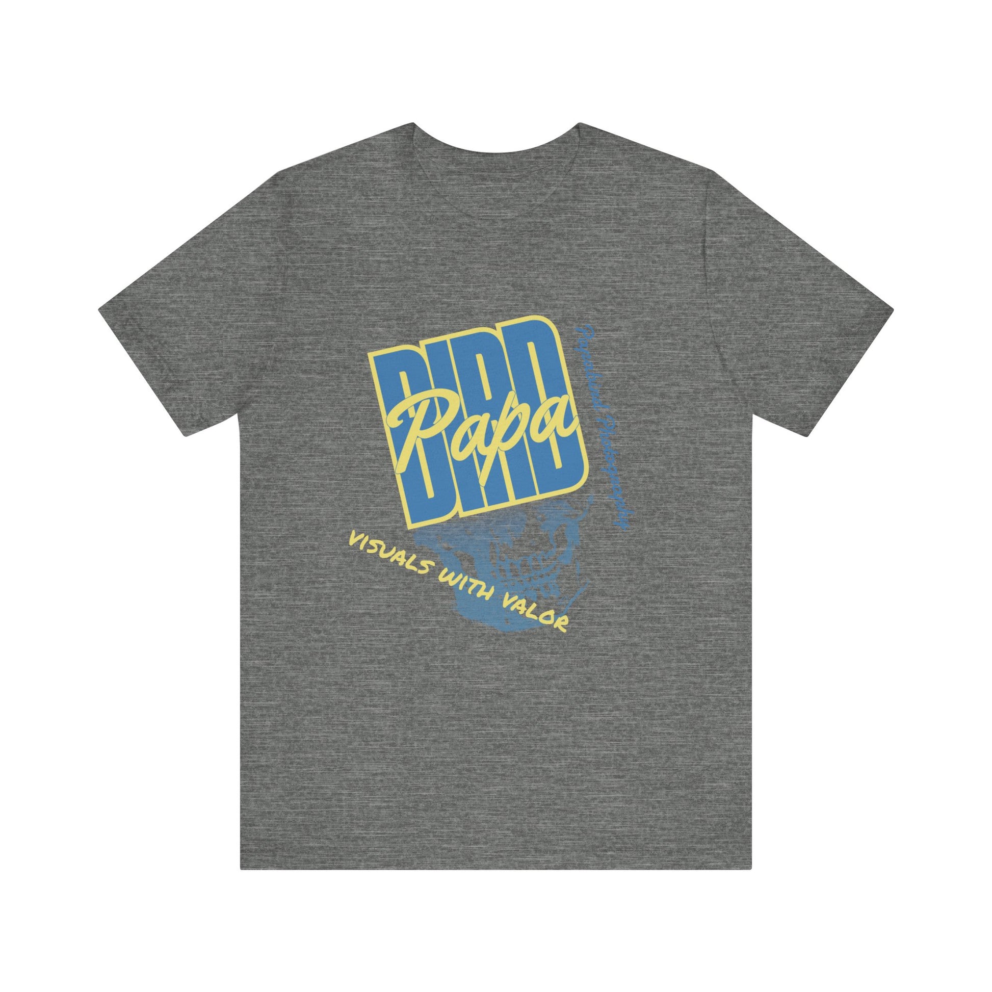 Built for the bold, this tee brings serious energy with a striking design that merges grit and creativity. Featuring a fierce skull graphic, oversized BIRD lettering, and the signature "Papa" script, it's a shoutout to the fearless eye behind the lens. The tagline "Give'em the Bird" seals the message: this is gear for creators who don’t play it safe.