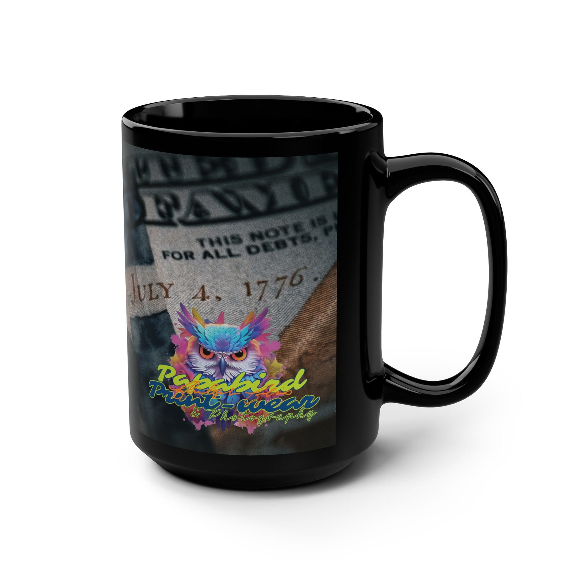 Wrap your coffee in the spirit of American independence. This bold mug design features a striking close-up of Benjamin Franklin from a $100 bill, with the date July 4, 1776 vividly displayed — a perfect blend of patriotism and prosperity.