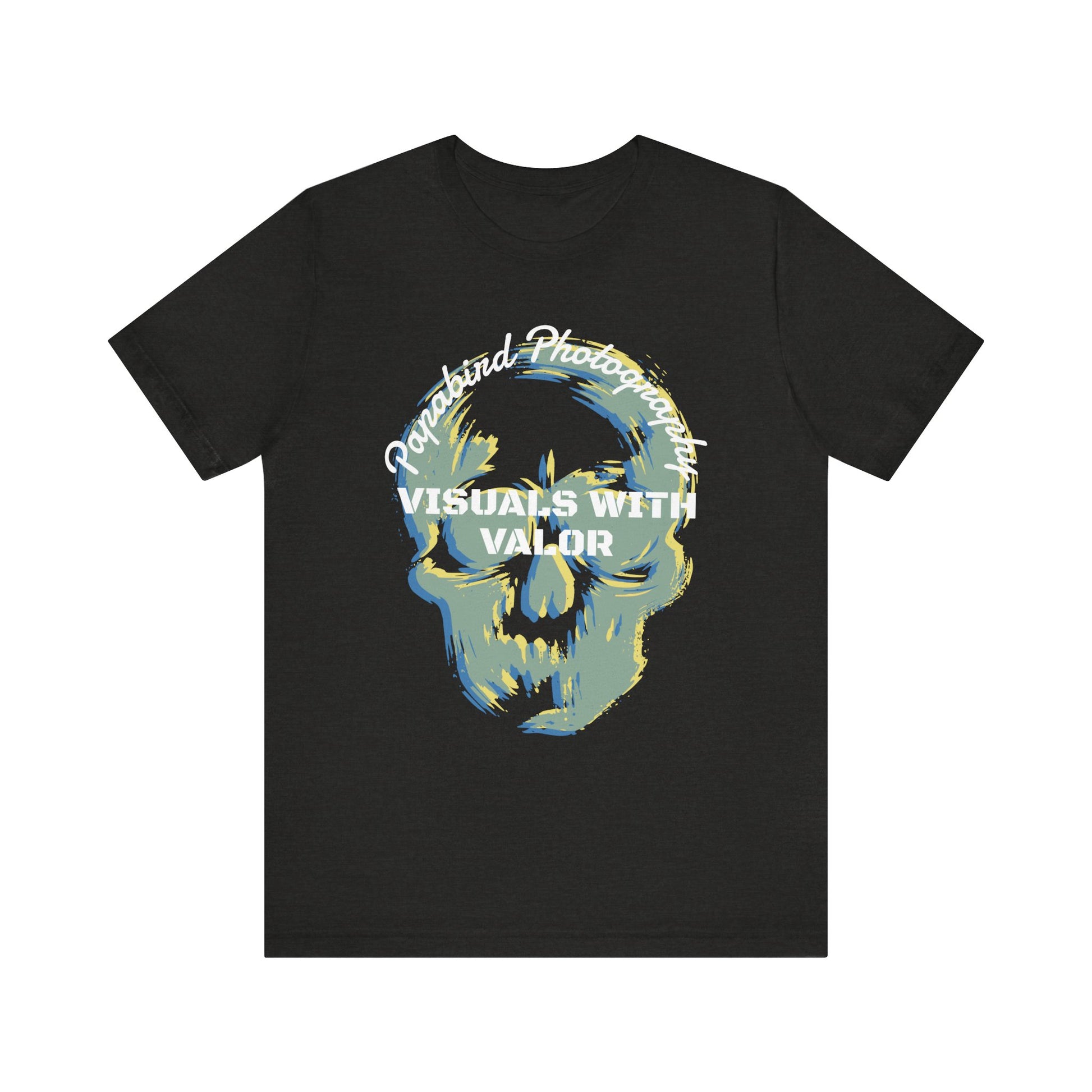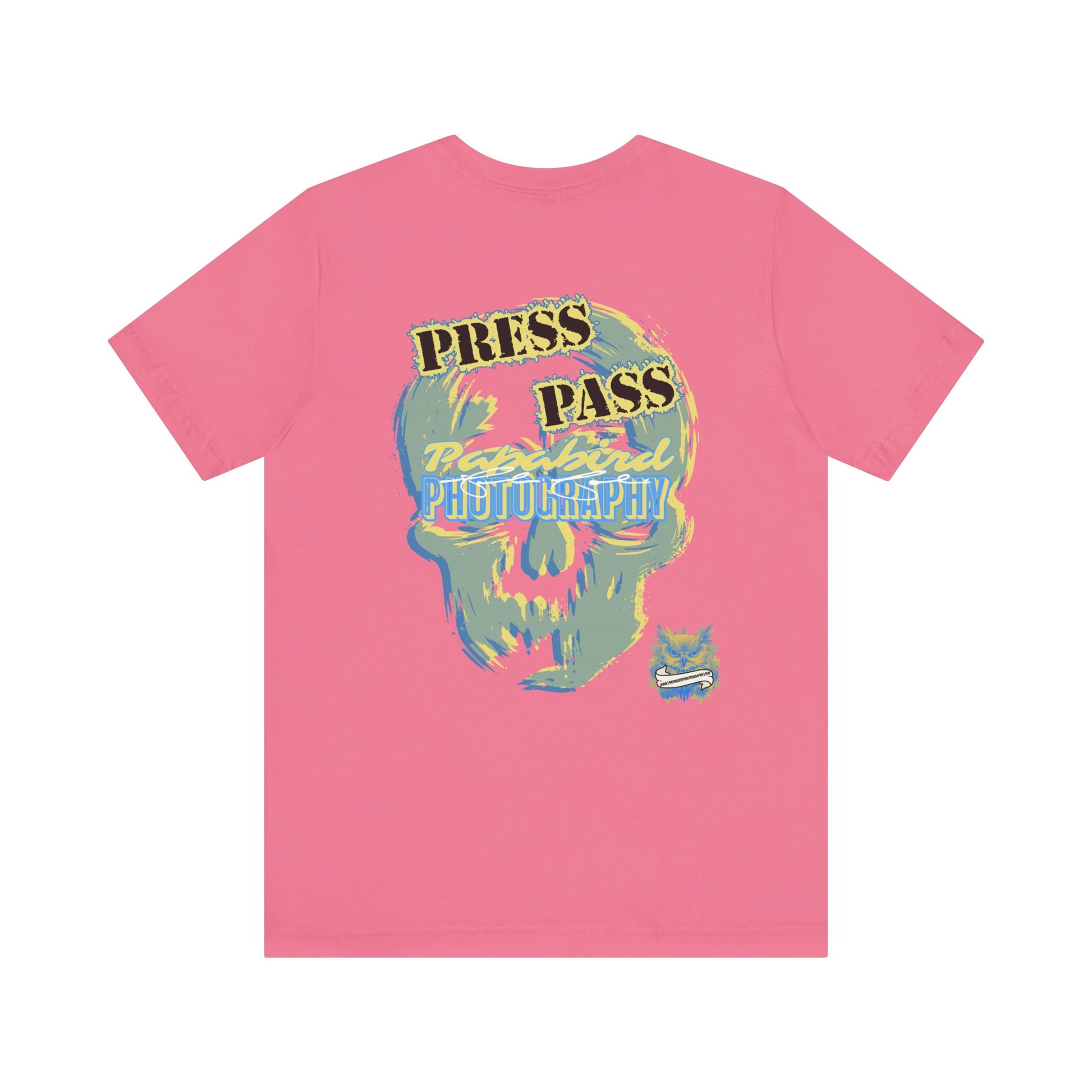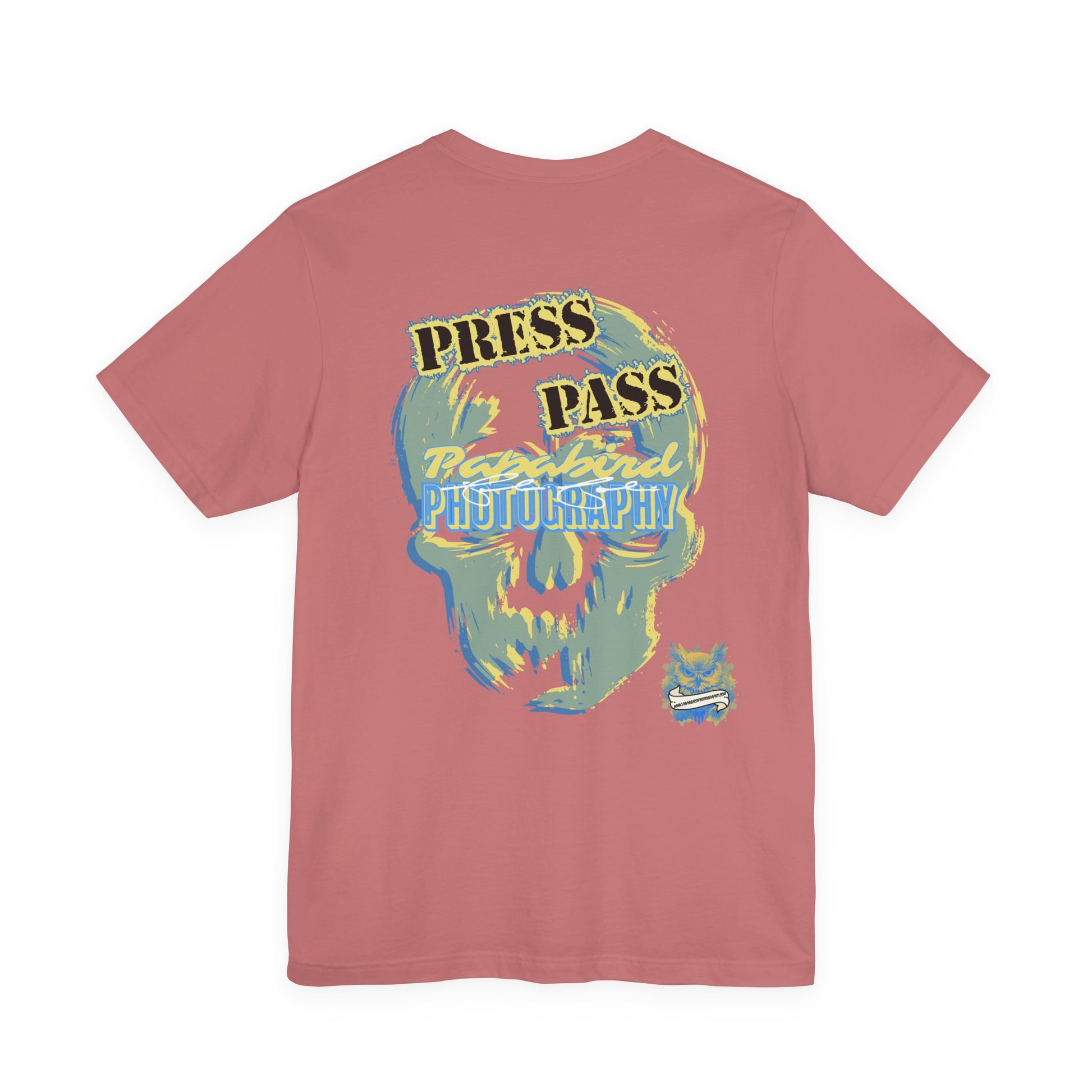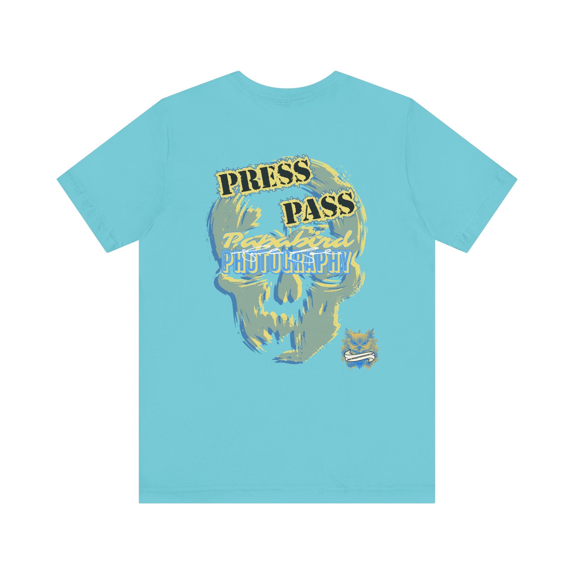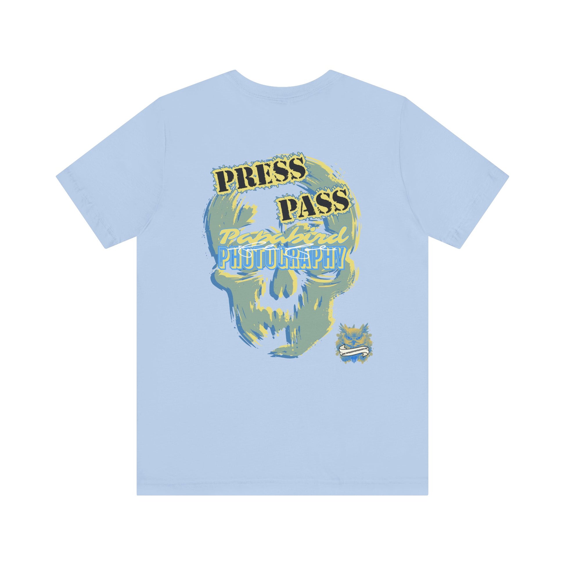 This Papabird Photography Press Pass Graphic Tee fuses creative grit with graphic impact. Featuring a bold, abstract skull design layered with dynamic strokes of blue, yellow, and gray, it captures the fearless spirit behind the lens. Press Pass anchors the piece with power and authority.