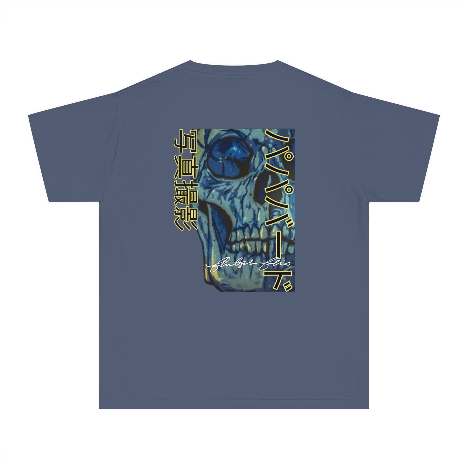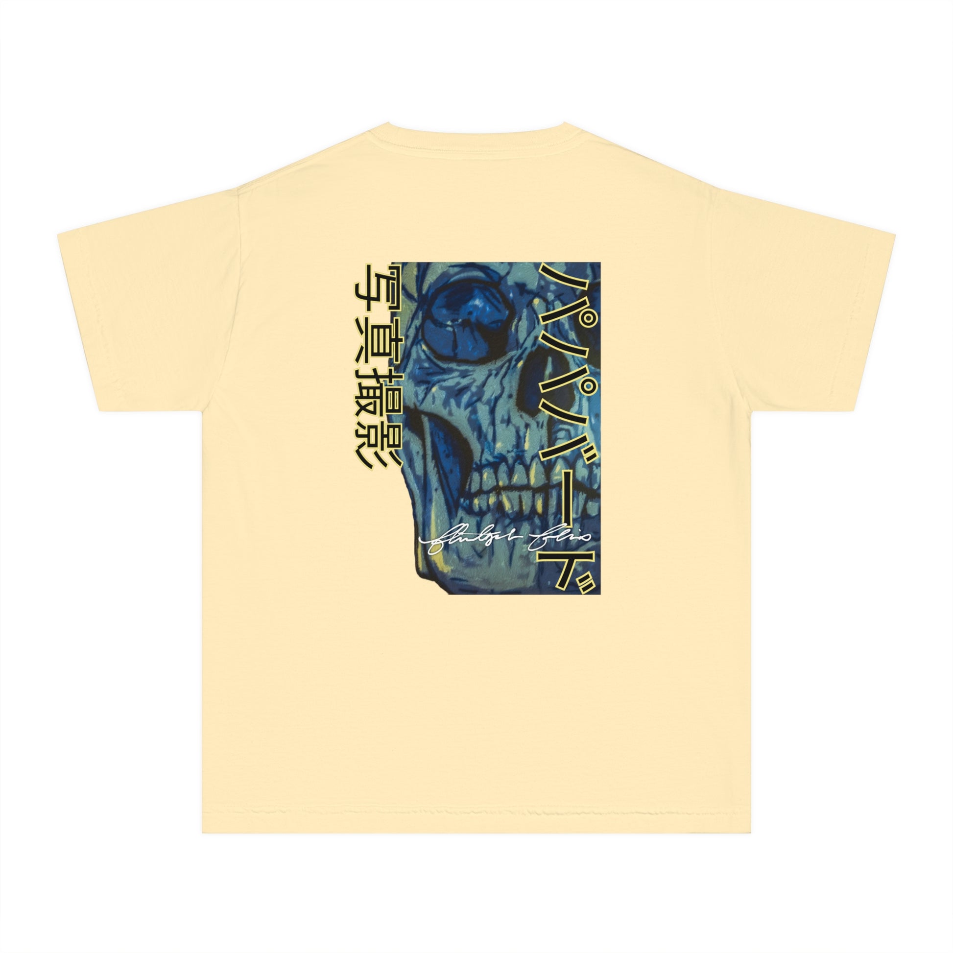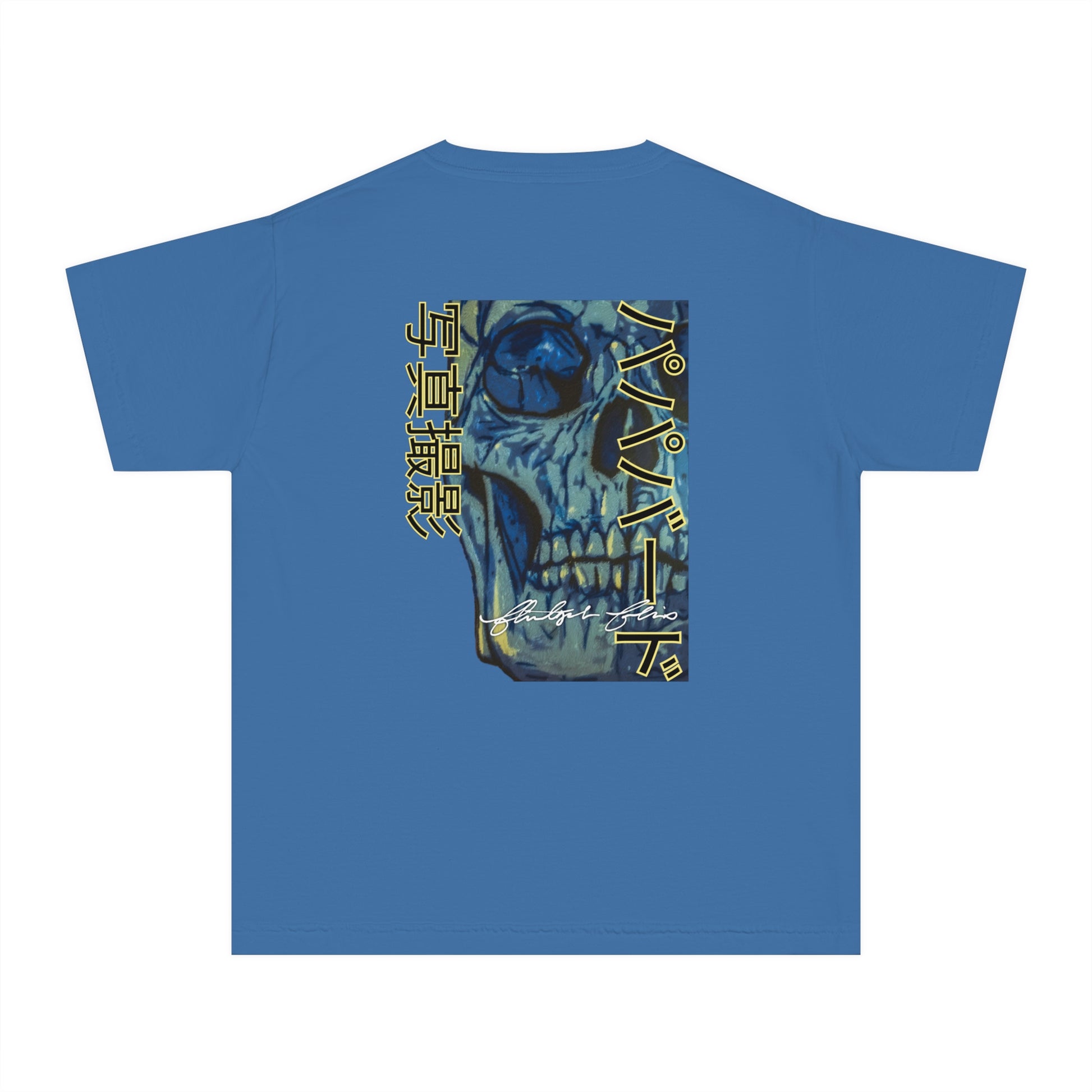 Unleash your inner street rebel with our youth “Neon Skull International” Graphic Tee, featuring a jaw-dropping, stencil-style skull artwork in electric blues and muted golds. This eye-catching design features Papabird Photography in English on the front and in Japanese on the reverse. These aren't just shirts with photos; they're wearable art and keepsakes that spark conversation and ignite creativity wherever you go.