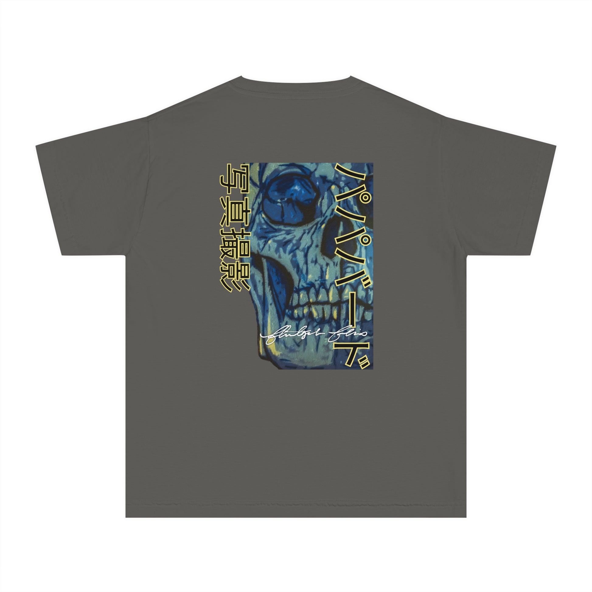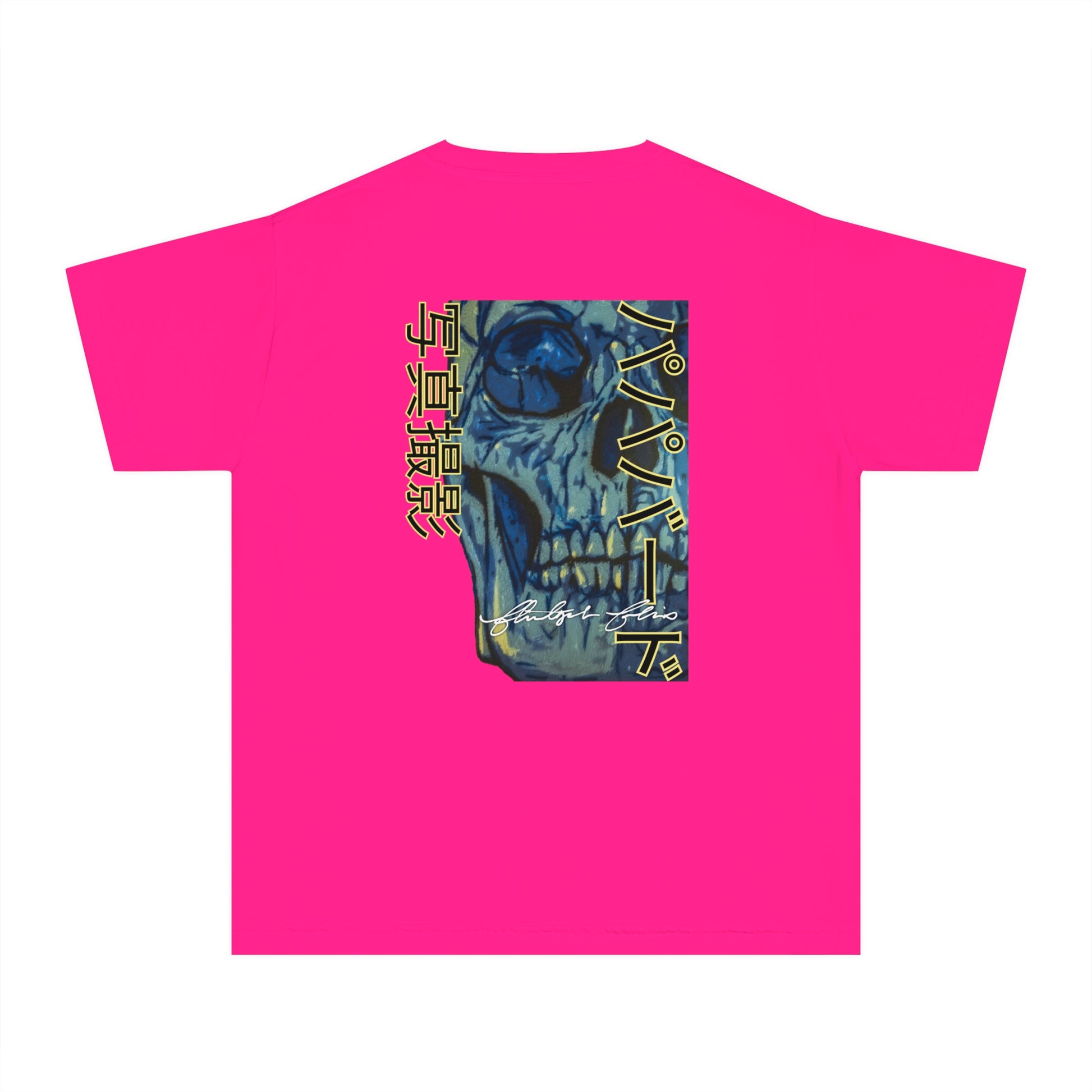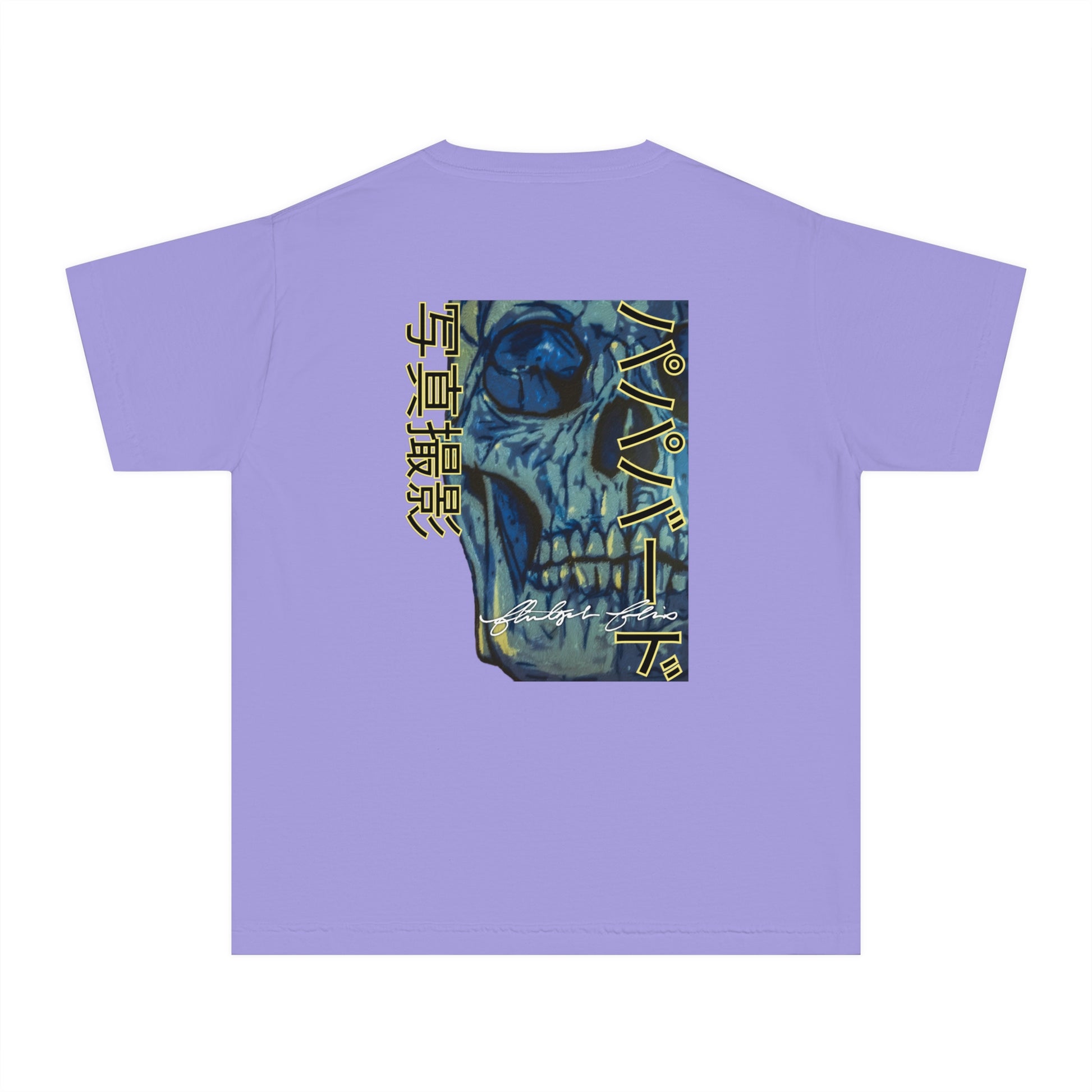 Unleash your inner street rebel with our youth “Neon Skull International” Graphic Tee, featuring a jaw-dropping, stencil-style skull artwork in electric blues and muted golds. This eye-catching design features Papabird Photography in English on the front and in Japanese on the reverse. These aren't just shirts with photos; they're wearable art and keepsakes that spark conversation and ignite creativity wherever you go.
