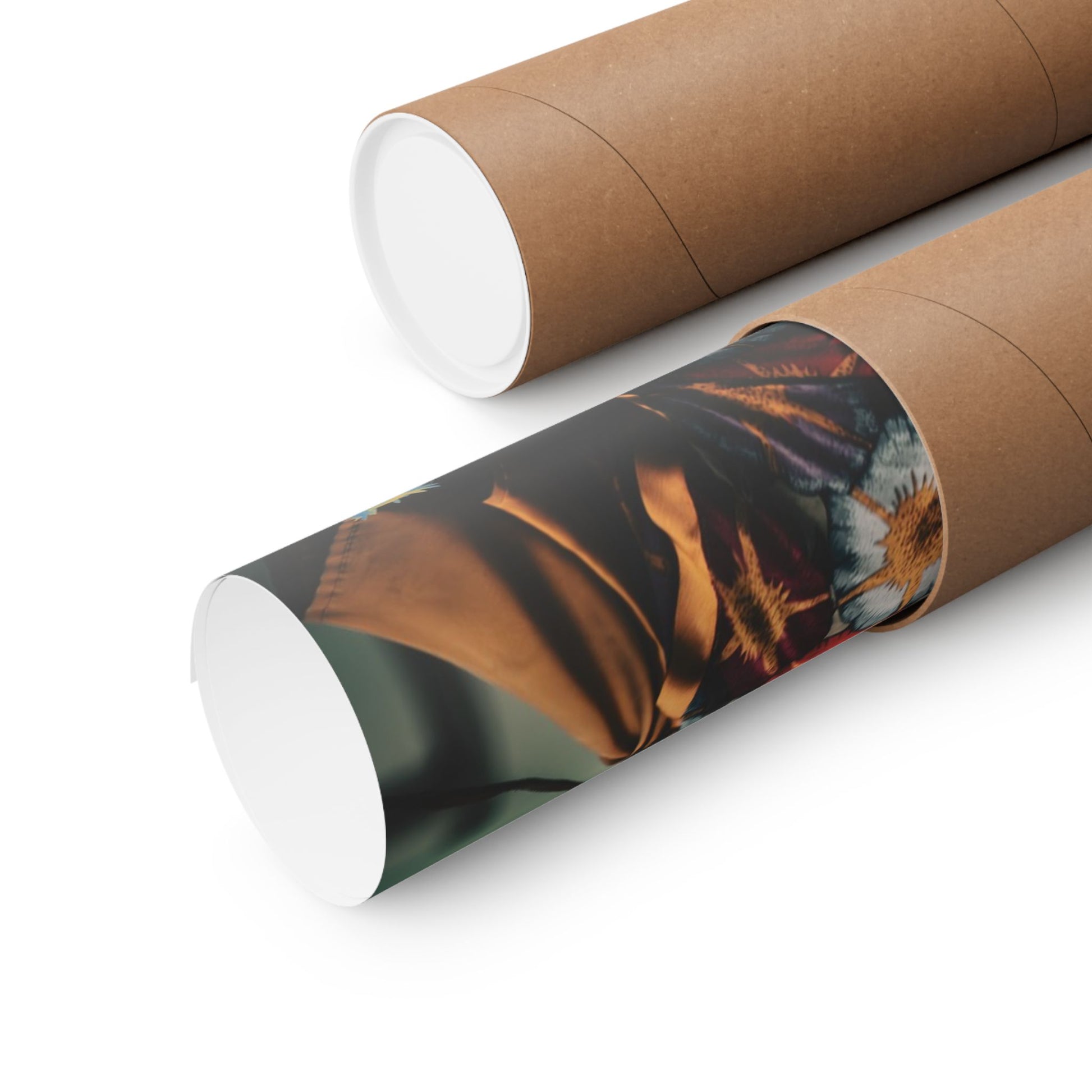 The bold contrast between tradition and nationhood, captured through intense color grading and dramatic lighting, makes this a truly conversation-starting wall piece.